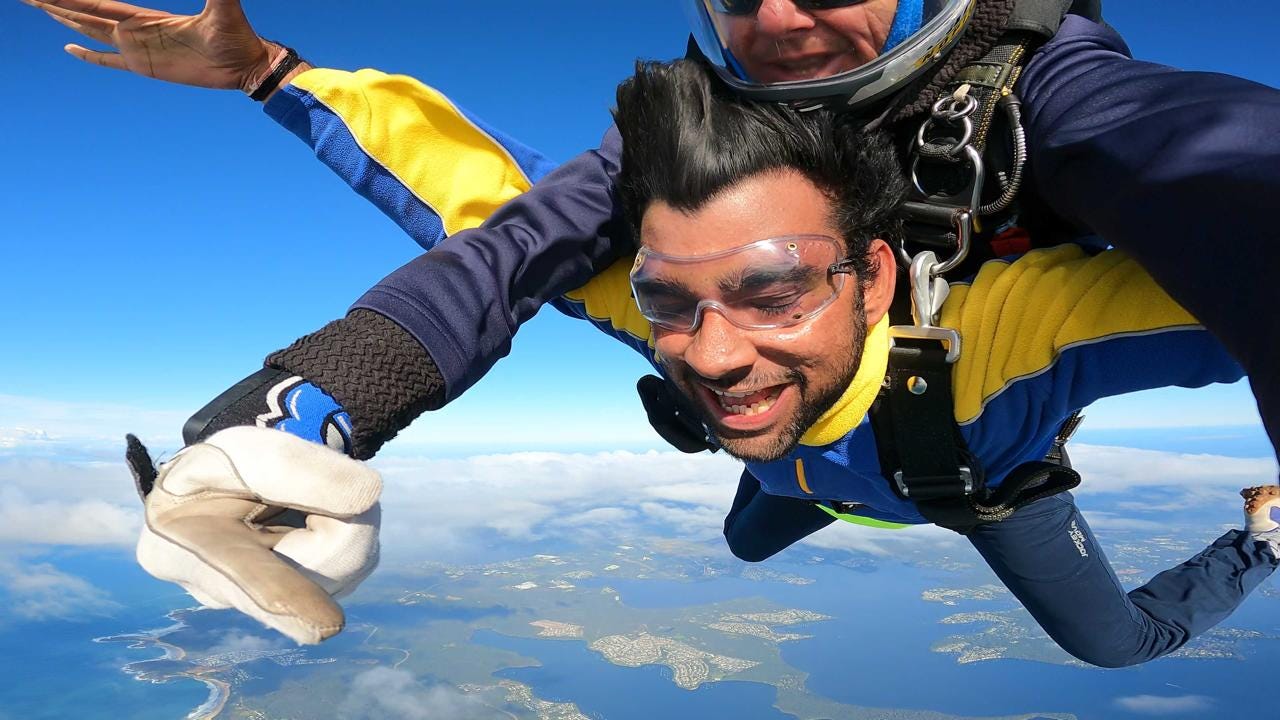 There are people in the tiny plane with you—like a group of 55-year-old aunties, chatting excitedly, and a calm 18-year-old boy whose parents gifted him this jump for his birthday. There’s also a 40-something woman who’s doing it for the third time.