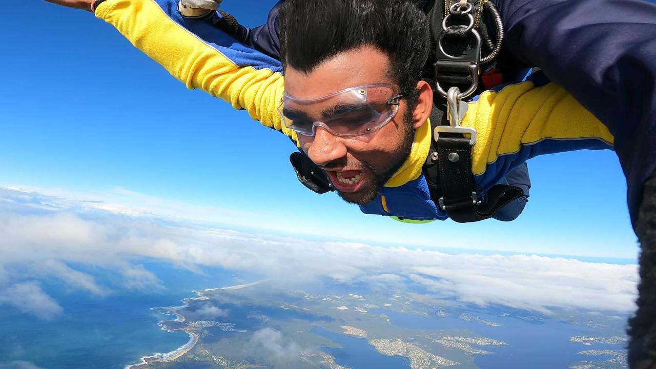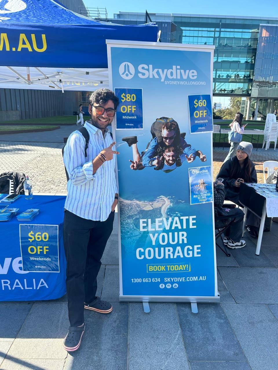 But then, a beautiful lady called out to me from behind a desk. The stall read “Skydive Australia.”